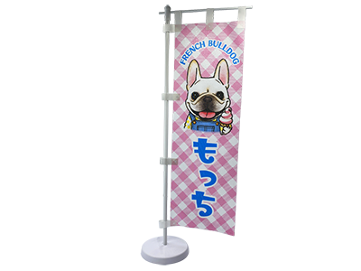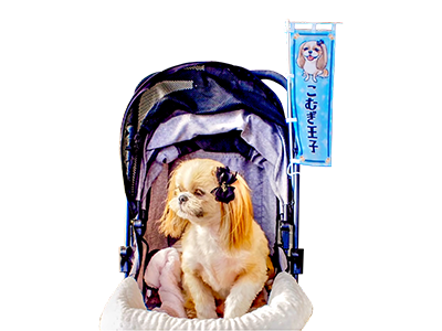 ワンちゃんのカートに取り付ても、卓上においてもかわいいミニのぼり旗です。卓上における用の台座部分も付属。